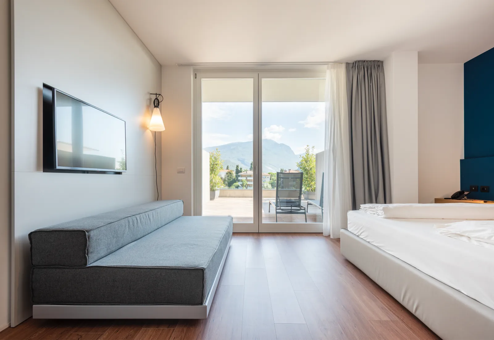 da 65 € / notteAll’ultimo piano dell’hotel, godono di una splendida vista sul Garda Trentino. Le Joyful misurano 22 mq, dispongono di terrazzo o balcone, arredati con tavolino e sedie; offrono letto con materasso Dorelan ReActive®, una piccola zona salotto con sportbar, TV a schermo piatto e telefono, bagno con doccia.