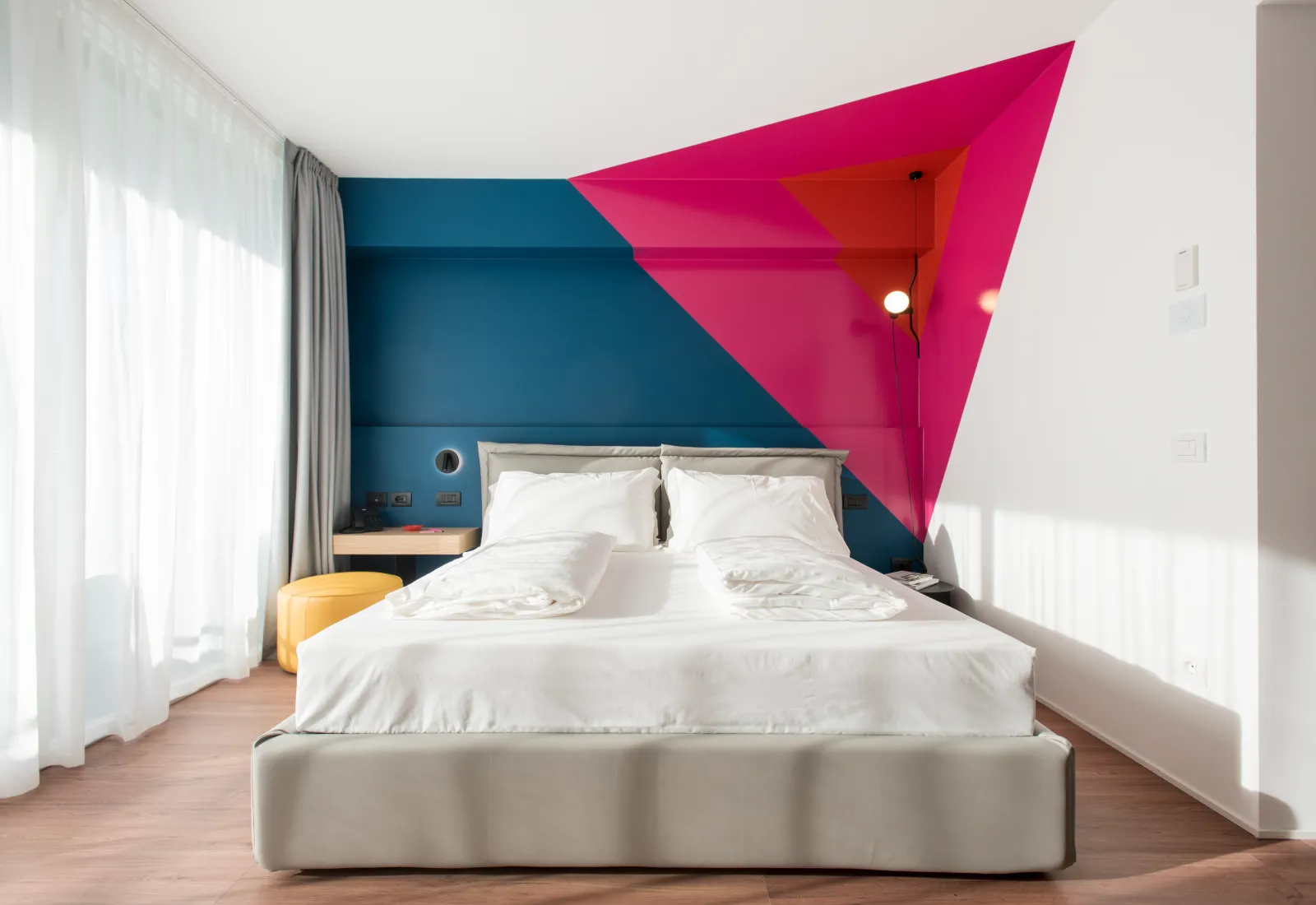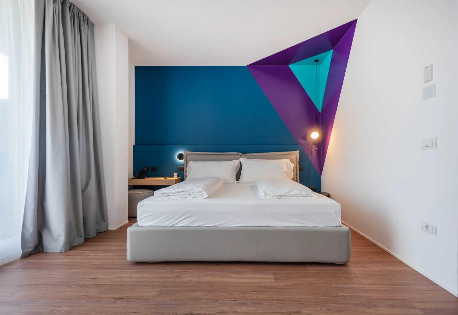 da 55 € / notteSemplicità, comfort e stile: queste camere di 20 mq, offrono un grande letto King Size con materasso Dorelan ReActive®, per un riposo da veri campioni, bagno con doccia, TV a schermo piatto, sportbar SMEG, balcone privato con arredo di design in stile Hoody.
